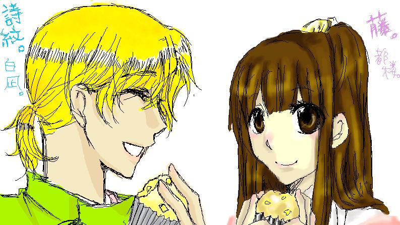 詩紋が作ったお菓子を、2人で並んで食べているといいわ!
