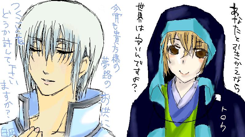 念願かなっての都楼との絵チャ!描いたものは当然、共通ジャンルの遙かシリーズです。