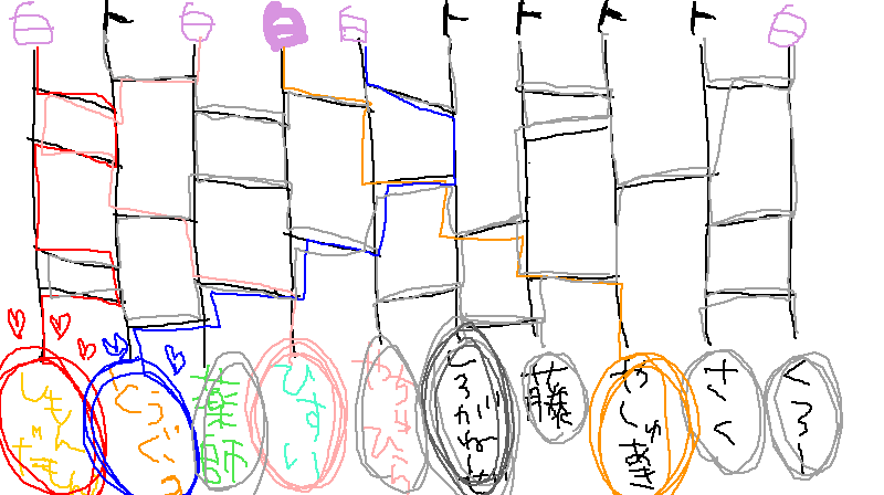 どうせなら面白い組み合わせにしようぜ!みたいなノリで描きたいキャラを挙げていき、どちらが描くかは適当に阿弥陀で決めました。